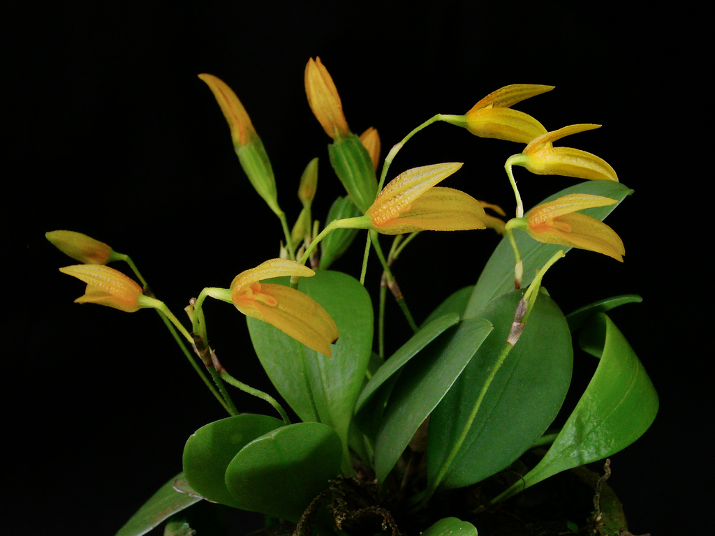 Found in Nicaragua and Costa Rica at elevations around 500 to 600 meters as a mini-miniature sized, hot to warm growing epiphyte with short, erect ramicauls enveloped by 2 tubular sheaths and carrying a single, erect, coriaceous, elliptical-obovate, obtuse to rounded, cuneate below into the petiolate base leaf that blooms in the summer on a very congested, more or less fasciculate, 1.2 to 1.28" [3 to 3.2 cm] long, successively single, 2 to 3 flowered inflorescence arising from the apex of the ramicaul, with imbricating floral bracts.