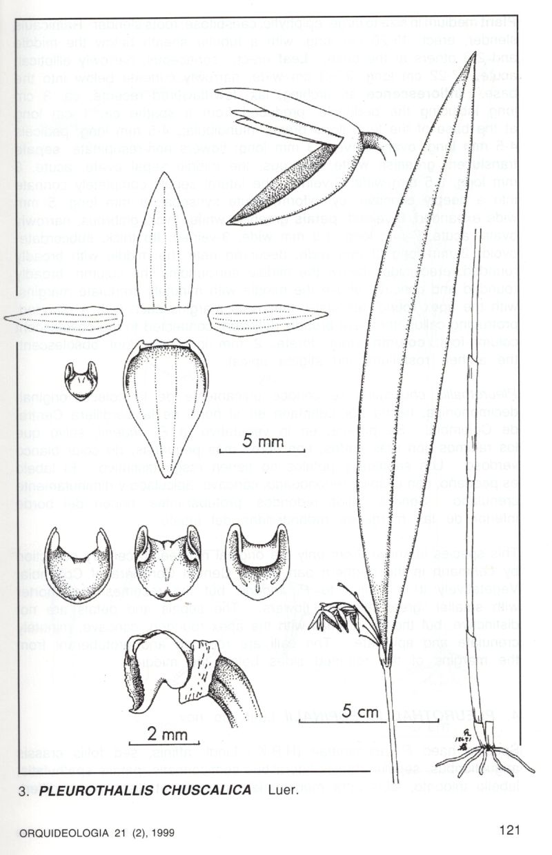 References W3 Tropicos, Kew Monocot list , IPNI ; *Orquideologia Vol 21 #2 1999 drawing fide; Icones Pleurothallidinarum Vol XVIII Systematics of Pleurothallis subsection Antenniferae, Longiracemosae, Macrophyllae-Racemosae and Subgenera Pseudsostelis and Acuminata Luer 1999 drawing fide;