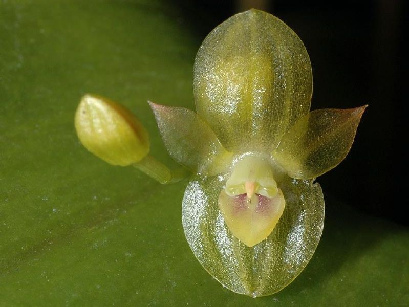 Found in Ecuador in very wet montane cloud forests as a miniature sized, warm to cool growing terrestrial on road cuts and steep embankments and an epiphyte at elevations of 1250 to 1500 meters with a short rhizome, an elongate, slender, erect ramicaul enveloped basally by 2 to 3, close, tubular sheaths and another on the lower third and carrying a single, apical, narrowly cordate, acute leaf and blooms in the late winter through summer with successive opening single flowers on a fasciculcate, very short inflorescence arising from a spathe holding the non-resupinate flower close to the leaf base.