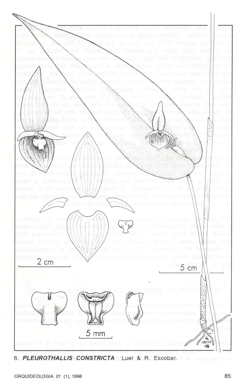 References W3 Tropicos Kew Monocot list , IPNI ; *Orquideologia Vol 21 #1 1998 Drawing/photo fideNative Colombian Orchids Vol 6 COS 1998 photo fide; Icones Pleurothallidinarum XXVII Systematics of Dryadella and Acronia Section Macrophyllae-Fasciculatae Luer 2005 as Acronia constricta drawing fide