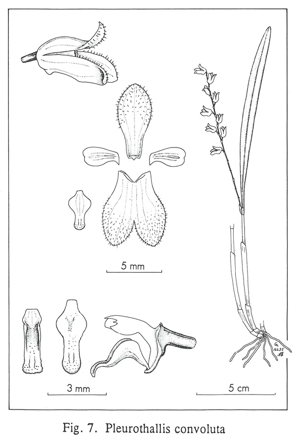 Pleurothallis convoluta Lindl. 1845 SUBGENUS Specklinia SECTION Effusae Lindl. 1842 Drawing by Carl Luer and The Swiss Orchid Foundation at the Jany Renz Herbaria Website