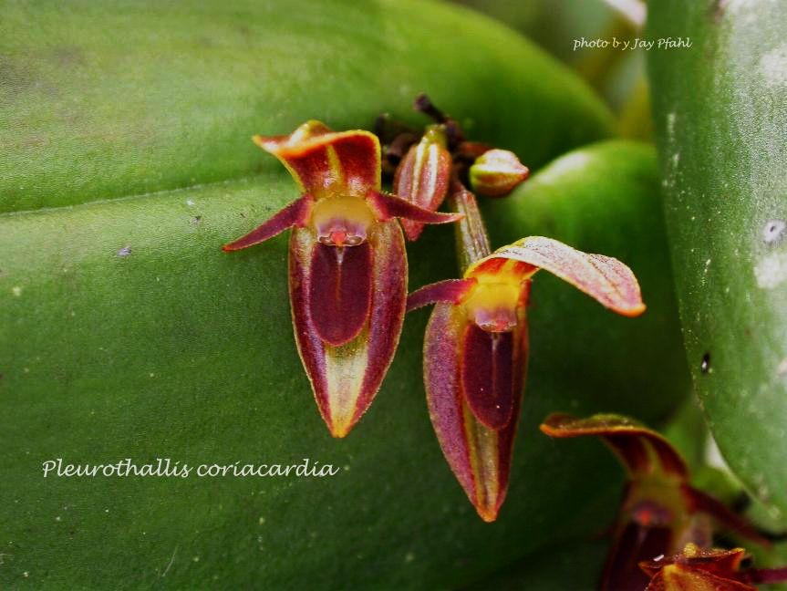 Pleurothallis coriacardia Rchb. f. 1854 SUBGENUS Pleurothallis SECTION Macrophyllae-Fasciculatae Lindl 1859 Photo courtesy of Jay Pfahl