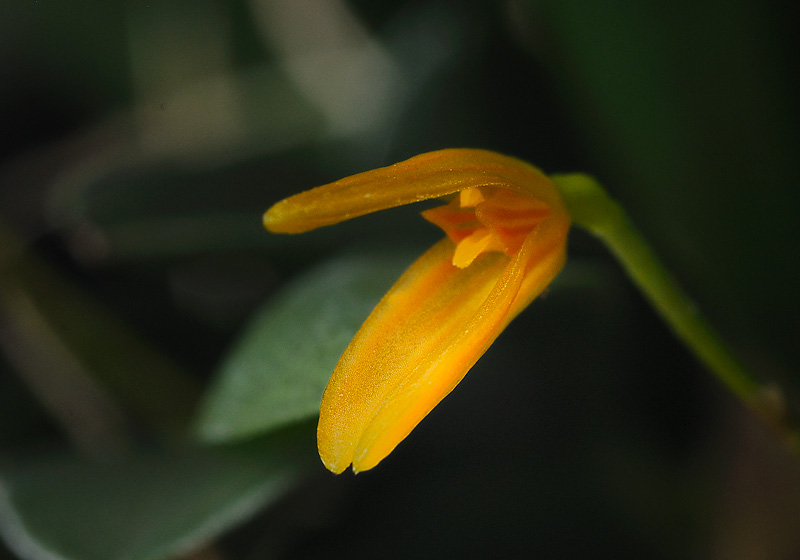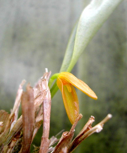 Found in Mexico, Guatemala, Nicaragua, Panama, Cuba and Jamaica in dense tropical forests at elevations of 5 to 1350 meters as a miniature sized, hot to cool growing epiphyte with erect, slender ramicauls enveloped basally by 3, scarious sheaths and carrying a single, apical elliptic, obtuse, narrows below into the conduplicate petioleate base leaf and blooms in cultivation in the spring on a 1 5/8" [4 cm] long, successively few, single flowered inflorescence arising from above the base with an acumiante floral bract