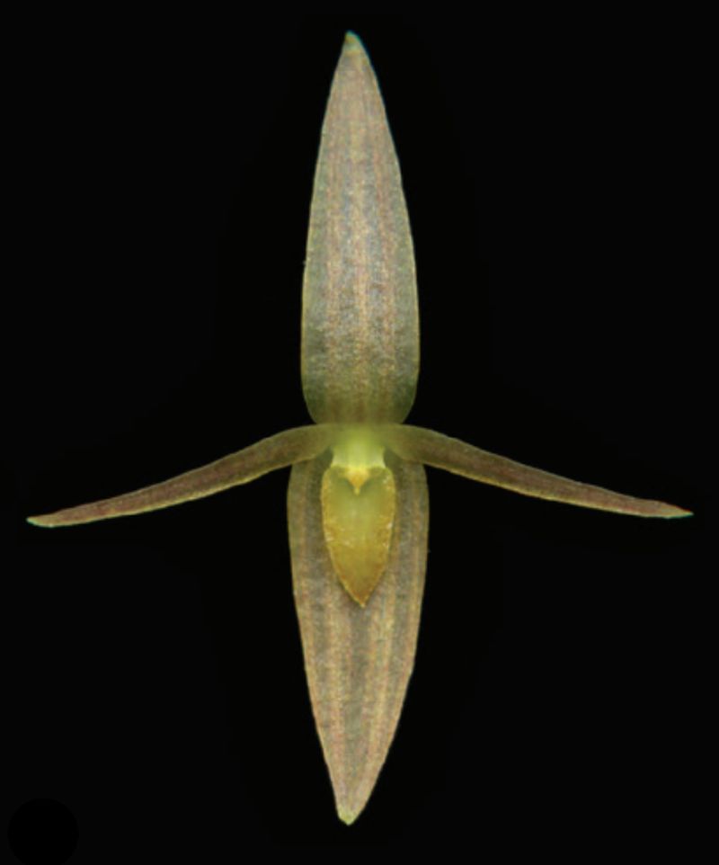 Found in Ecuador at elevations around 1000 to 2500 meters as a small sized, warm to cool growing epiphyte with an erect slender ramicaul enveloped basally by a tubular sheath below the middle and 2 others at the base and carrying a single, apical, erect, round, deeply cordate, acute, thick, sessile basally, coriaceous leaf that blooms in the late winter and early spring on a fascile of successive single flowered inflorescence arising through a spathe and holding the flower close to the leaf base.