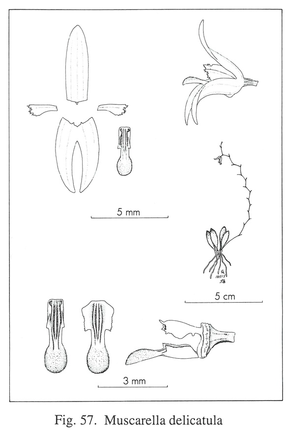 References W3 Tropicos, Kew Monocot list , IPNI ; Orchidaceae Antillanae Nir 2000 drawing no; Icones Pleurothallidinarum Vol XXVI Luer 2004 as Specklinia delicatula ; Icones Pleurothallidinarum Vol XXVIII Luer 2006 as Muscarella delicatula drawing fide; Orchid Flora of the Greater Antilles Ackerman 2014