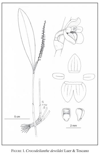 References W3 Tropicos, Kew Monocot list , IPNI ; * Harvard Papers in Botany Vol. 23, No. 1, pp. 47–51 Luer & Toscano 2018 as Crocodeilanthe dewildei drawing fide,