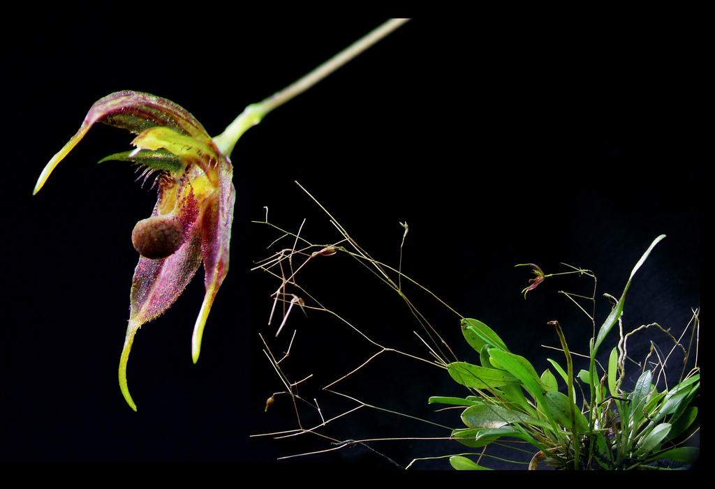 Kew still has this one as a synonym of P aristata but the mini-miniature sized plant found at low elevations is easily distinguished by the short thick sepal tails, the bent dorsal sepal and a thick clavate, bulbous apically lip and the bifurcating inflorescence