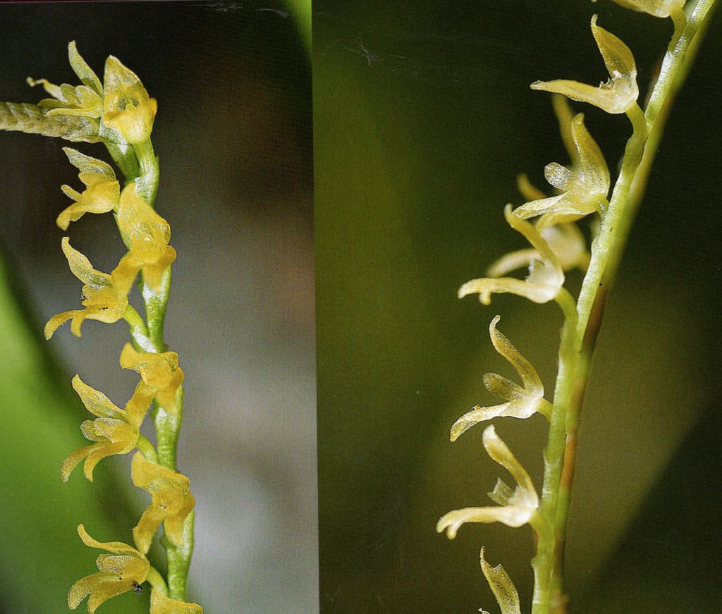Found in Cuba, Dominican Republic, Puerto Rico, Leewards and Jamaica in wet montane and cloud forests at elevations of 600 to 1500 meters as a small sized, warm to cool growing epiphyte or lithophyte with erect ramicauls enveloped by 2 to 3 scarious, tubular sheaths and carrying a single, apical, coriaceous, narrowly oblong-elliptic to elliptic-oblanceolate, rounded, cuneate below into the petiolate base leaf that blooms in the summer and fall on 1 to 3, terminal, erect, slender, 2.2 to 3.4" [5.5 to 8.5 cm] long, many flowered inflorescence arising through a scarious, conduplicate spathe