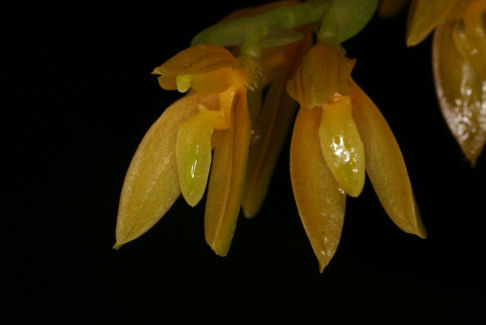Found from Mexico, Belize, Guatemala, Costa Rica, Panama, Guyana, Surinam, Venzuela, Colombia, Ecuador, Peru and Bolivia in evergreen cloud forests and montane rain forests as a miniature to small sized, cool to warm growing epiphyte at elevations of 900 to 2000 meters with a short ramicaul bearing a single, tubular, acute, green sheath and a single apical, narrowly elliptic-lanceolate, blunt, thickly coriaceous, narrowing below into the conduplicate, petiolate base leaf that blooms in the winter and spring on an erect, about 14.8" [37 cm] long, loosely may flowered, racemose, fractifex inflorescence having 2 imbricating, close, long, acuminate bracts and lanceolate floral bracts with the flowers held way above the leaves.