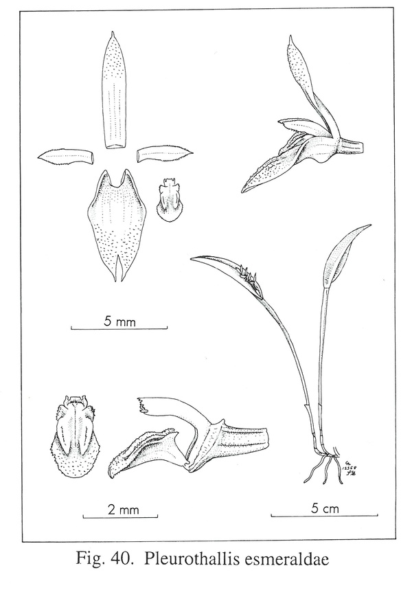 Pleurothallis esmeraldae Luer & Hirtz 1996 SUBGENUS Acianthera Drawing by © Carl Luer and The Swiss Orchid Foundation at the Jany Renz Herbaria Website