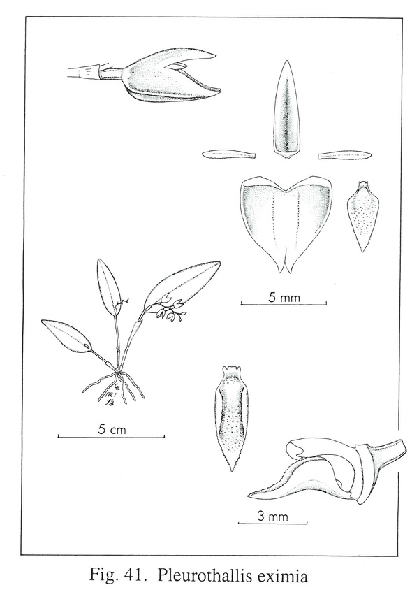 Pleurothallis eximia L.O.Williams 1942 SUBGENUS Acianthera Drawing by © Carl Luer and The Swiss Orchid Foundation at the Jany Renz Herbaria Website