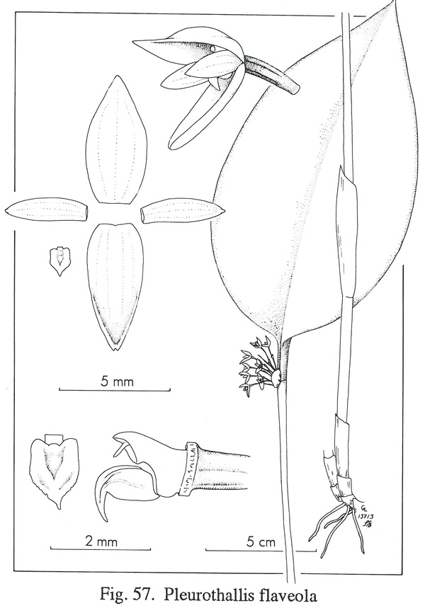 Pleurothallis flaveola Luer & Hirtz 1996 SUBGENUS Pleurothallis SECTION Pleurothallis SUBSECTION Pleurothallis SERIES Pleurothallis Luer 1986Drawing by © Carl Luer and The Swiss Orchid Foundation at the Jany Renz Herbaria Website