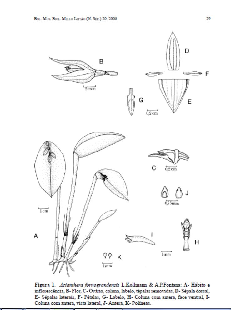 References W3 Tropicos, Kew Monocot list , IPNI ; Bol. Mus. Biol. Prof. Mello-Leitão, Nova Sér. 20: 27 2007 as Acianthera fornograndensis drawing fide; Pleurothallids Neotropical Jewels Vol 1 Karremans & Viera 2020 as Acianthera fornograndensis photo fide