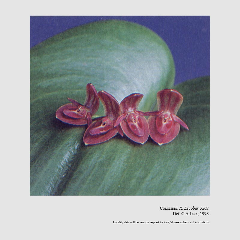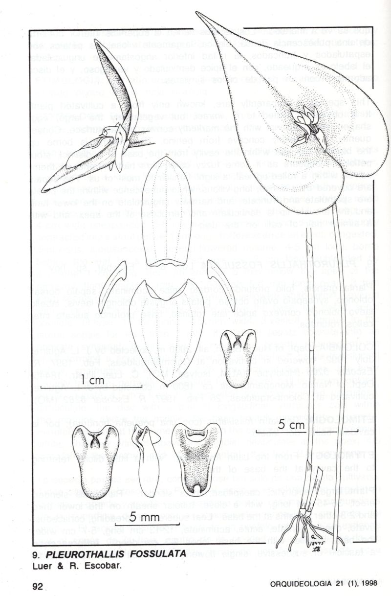 References W3 Tropicos, Kew Monocot list , IPNI ; *Orquideología Vol 21 #1 Luer & Escobar 1998 drawing/photo fide; Icones Pleurothallidinarum Vol XXVII Luer 2005 as Acronia fossulata drawing fide; Orquideas del Valle de Aburra Medellin Colombia Orqidelogia 2014 photos good