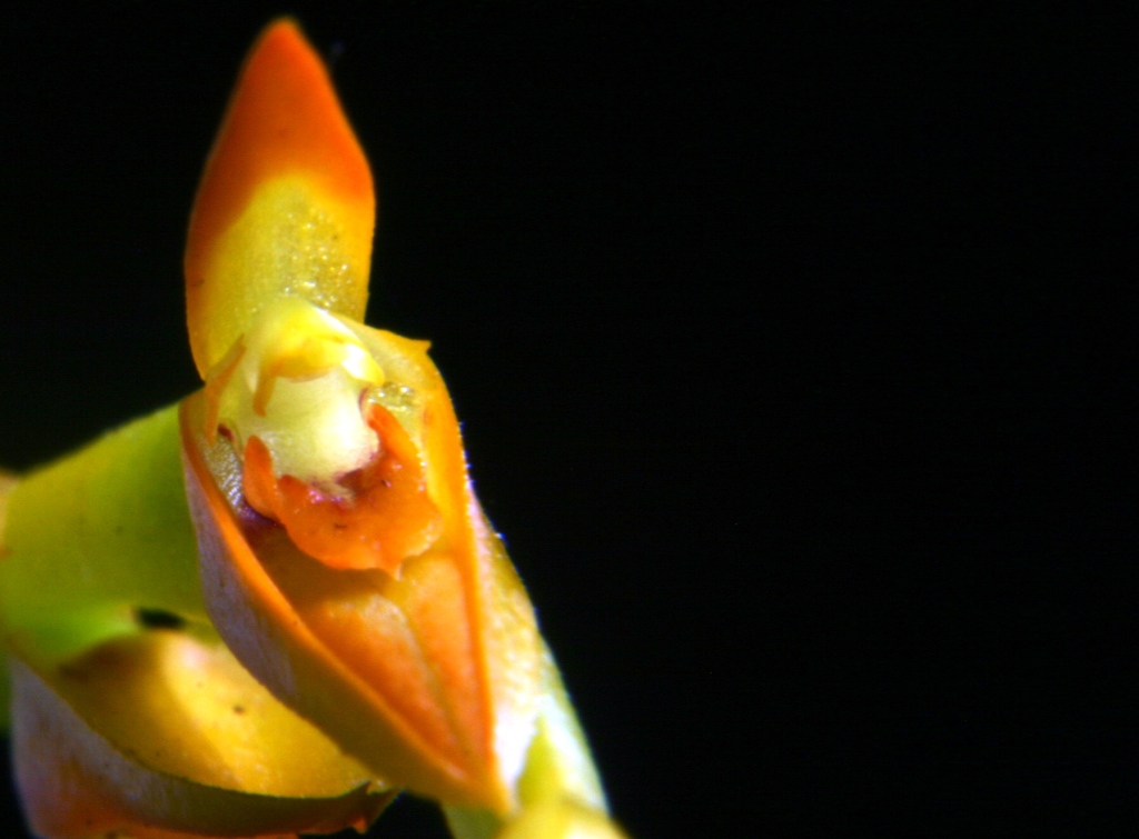 CAUTION It seems that there are 2 distinct ways that this epiteth has been used in the past. I feel that the photos above are correct but many references use this name for an orchid that has white flowers with long pedicels that dangle more than the yellow flowers which are somewhat adpressed to the inflorescence so that they appear to be sitting on it. I have not seen Lindley's original description so cannot be positive but all the synonym names [crocea, glazovii and vittelina] refer to this yellow flowered species as I have access to those drawings. I await Lindley's original description to finalize the subject!