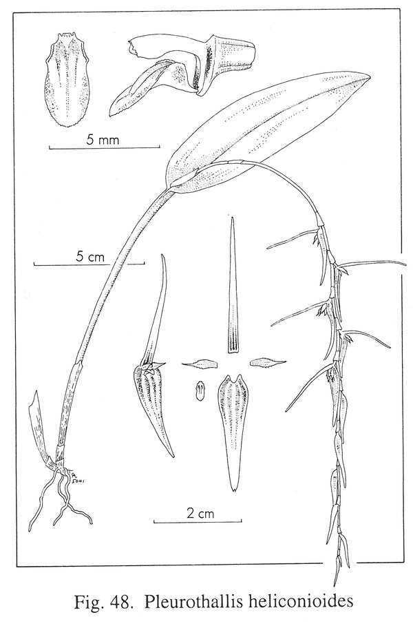 References W3 Tropicos, Kew Monocot list , IPNI ; Icones Pleurothallidinarum Vol III Luer 1986; Orchids of Bolivia Vol 1 Pleurothallidinae Vasquez & Ibisch 2000 drawing fide; Icones Pleurothallidinarum Vol XXVI Luer 2004 drawing fide; Pleurothallids Neotropical Jewels Vol 1 Karremans & Viera 2020 as Acianthera heliconoides photo fide
