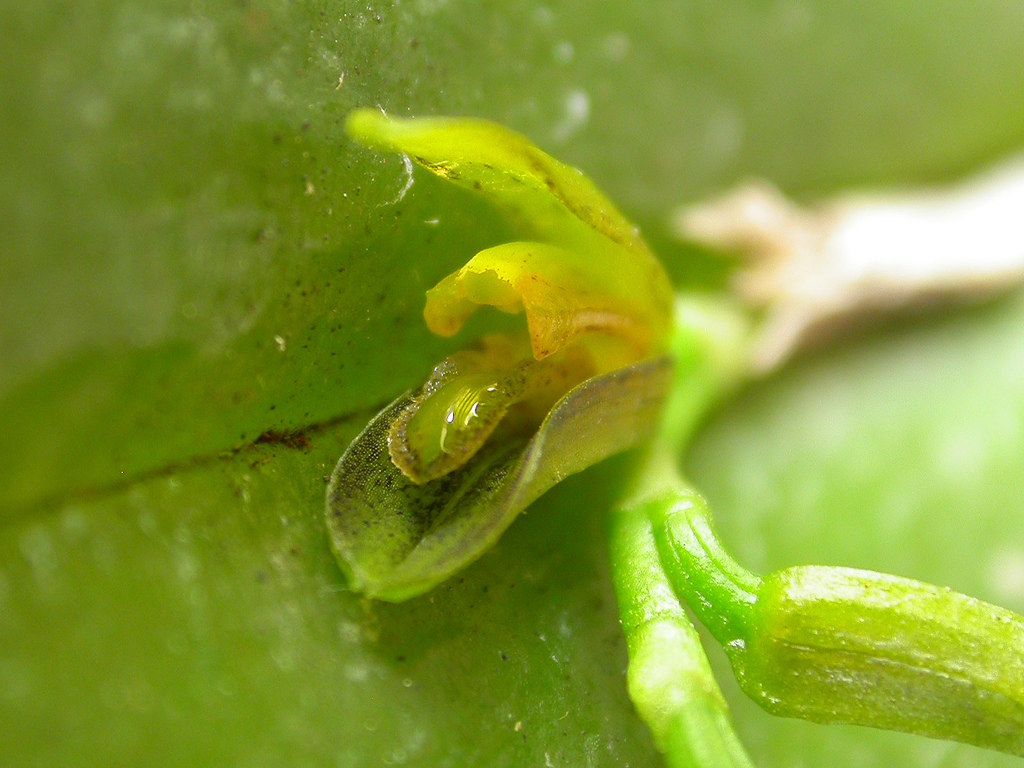 Found in Minas Gerais, and Rio de Janiero Brazil at elevations of 900 to 1200 meters as a small to medium sized, warm to cool growing epiphyte with erect ramicauls enveloped by 2 tubular sheaths and carrying a single, apical, coriaceous, leathery, ovate to narrowly ovate , conduplicate, dark green leaf that blooms in the fall on 1 to 2, 1 to 1.6" [2.5 to 4 cm] long, successively to 4 open at once, to 7 flowered inflorescence.