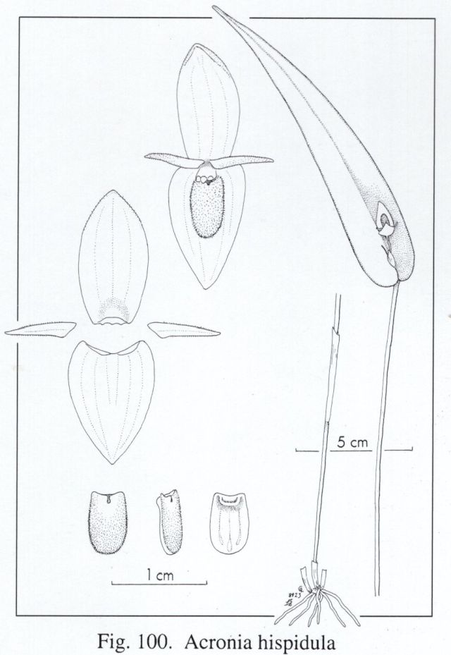References W3 Tropicos, Kew Monocot list , IPNI ; *Icones Pleurothallidinarum Vol XXVII Luer 2005 as Acronia hispidula drawing fide;