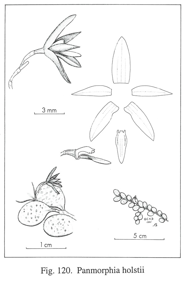 References W3 Tropicos, Kew Monocot list , IPNI ; Ann. Missouri Bot. Gard. 77: 551 Carnevali & I.Ramírez 1990 as P deborna drawing fide; Icones Pleurothallidinarum Vol XXVIII Luer 2006 as Panmorphia holstii drawing fide;