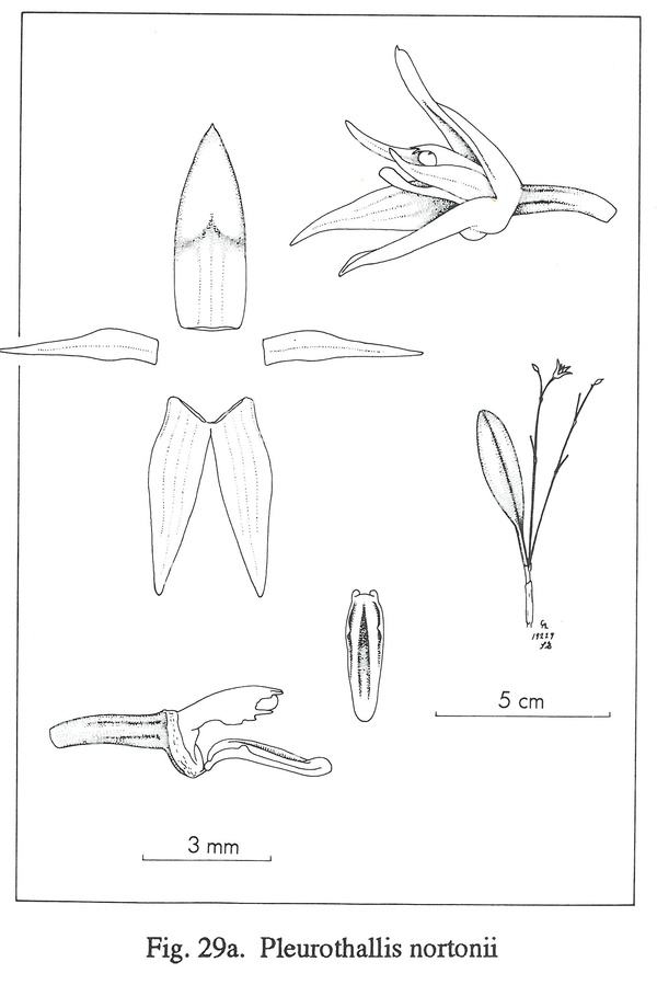 References W3 Tropicos, Kew Monocot list , IPNI ; Flora de Venezuela Foldats Volumen XV Part 2 1970 drawing fide; Icones Pleurothallidinarum Vol XVIII Systematics of Pleurothallis subsection Antenniferae, Longiracemosae, Macrophyllae-Racemosae and Subgenera Pseudsostelis and Acuminata Luer 1999 as P nortonii drawing fide; Icones Pleurothallidinarum Vol XXVI Luer 2004 as Specklinia humilis; Icones Pleurothallidinarum Vol XXVI Luer 2004 as Panmorphia humilis drawing fide