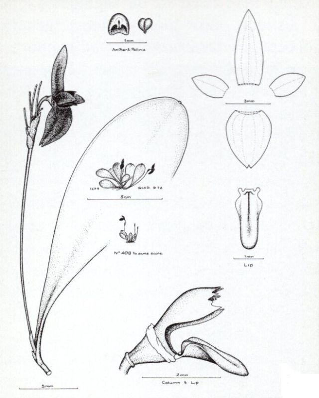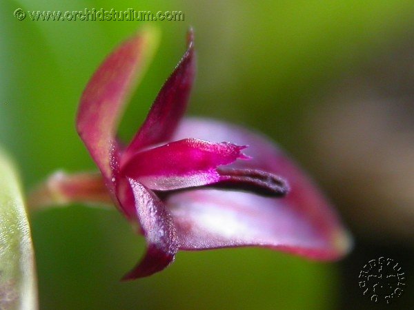 Found in Venezuela, Ecuador, Bolivia and Brazil at elevations around 200 to 1400 meters as a mini-miniature sized, hot to cool growing epiphyte with suberect ramicauls enveloped by 2 to 3 sheaths and carrying a single, apical, erect, coriaceous, elliptic, rounded, tridenticulate, gradually narrowing below into the elongate, petiolate base leaf that blooms in the winter through spring on a suberect, successively single flowered inflorescence.