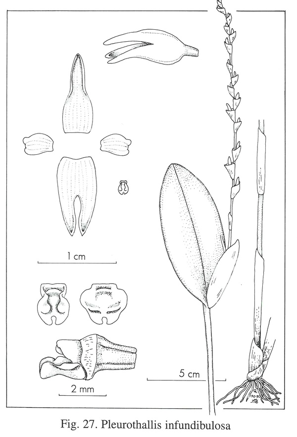 Pleurothallis infundibulosa Luer 1996 SUBGENUS Crocodeilanthe [Rchb.f & Warsc.]Luer 1986 Photo by © Carl Luer and The Swiss Orchid Foundation at the Jany Renz Herbaria Website