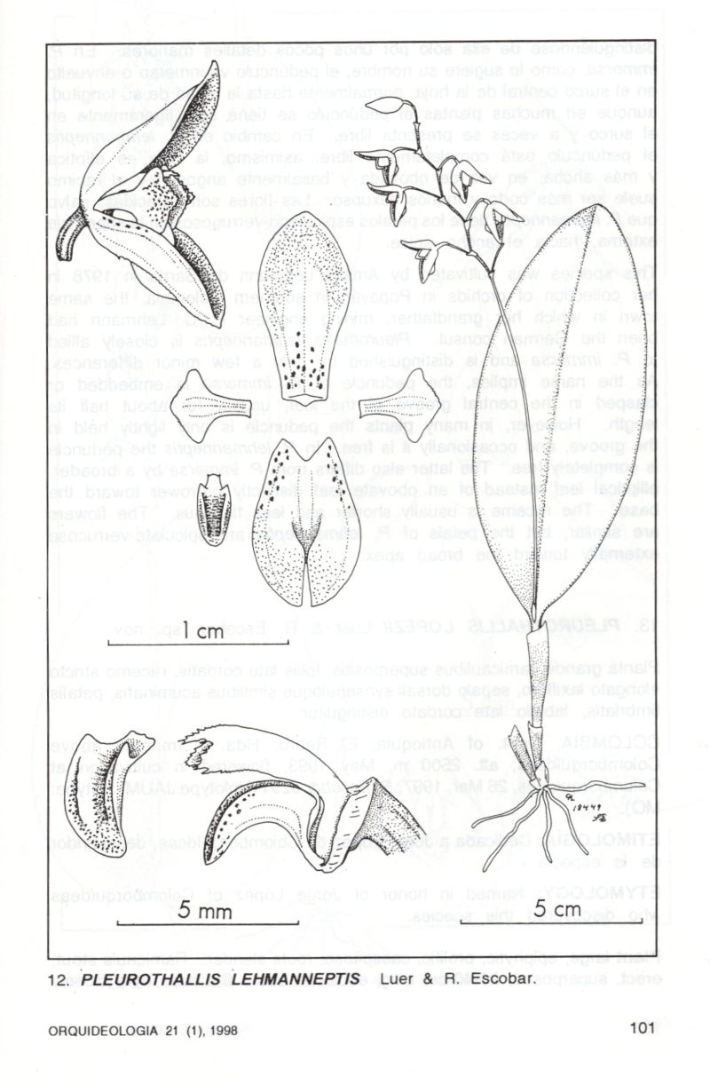 References W3 Tropicos, Kew Monocot list , IPNI ; *Orquideología Vol 21 #1 Luer & Escobar 1998 drawing fide; Native Colombian Orchids Vol 3 COS 1991 as P immersa photo fide; Native Colombian Orchids Vol 6 COS 1998 errata = P lehmanneptis; Icones Pleurothallidinarum Vol XX Luer 2000 Luer Drawing fide; Lindleyana Vol 16 No 4 2001 as Stelis lehmanneptis; Icones Pleurothallidinarum Vol XXVI Luer 2004 as Specklinia lehmanneptis; Icones Pleurothallidinarum Vol XXIX Luer 2007 as Effusiella lehmaneptis