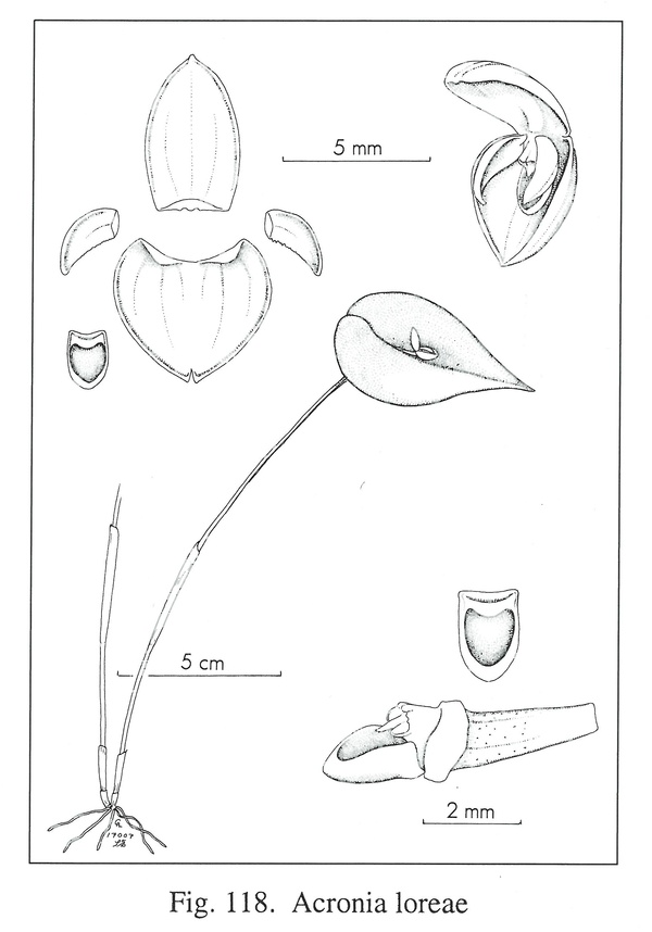 References W3 Tropicos, Kew Monocot list , IPNI ; Icones Pleurothallidinarum Vol III Luer 1986 drawing fide; Icones Pleurothallidinarum Vol XXVII Luer 2005 as Acronia loreae drawing fide