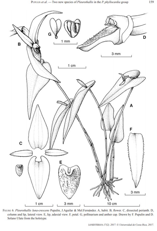 Pleurothallis luna-crescens Pupulin, J.Aguilar & Mel.Fernández 2017 SUBGENUS Pleurothallis SECTION Macrophyllae-Fasciclatae Lindl. 1859