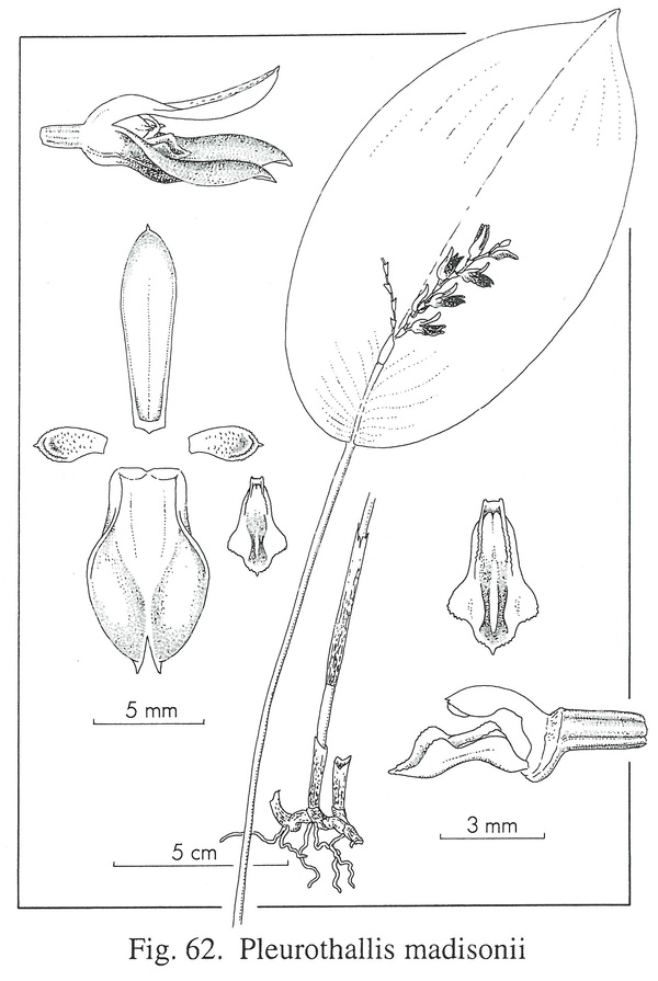 References W3 Tropicos, Kew Monocot list , IPNI ; Icones Pleurothallidinarum Vol III Luer 1986; Icones Pleurothallidinarum Vol XXVI Luer 2004 drawing fide; Pleurothallids Neotropical Jewels Vol 1 Karremans & Viera 2020 as Acianthera madisonii photo fide; Orquideas de Farallones de Cali Galindo-Tarazona, Haelterman, Zuluaga Trochez and Sebastian Moreno 2020 as Acianthera madisonii photo fide