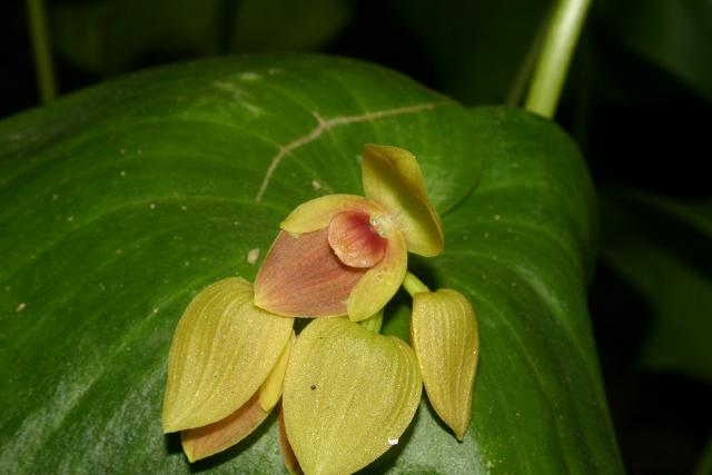 Found in Colombia as a large sized [one of the largest of the genus], cold growing epiphyte with elongated, stout, erect stems carrying a single, apical spreading, thick, broadly ovoid leaf that blooms in the spring and summer and on an inflorescence that arises from the base of the leaf and is short and has a single succesive flower that is held close to the leaf arising on both old and new leaves.