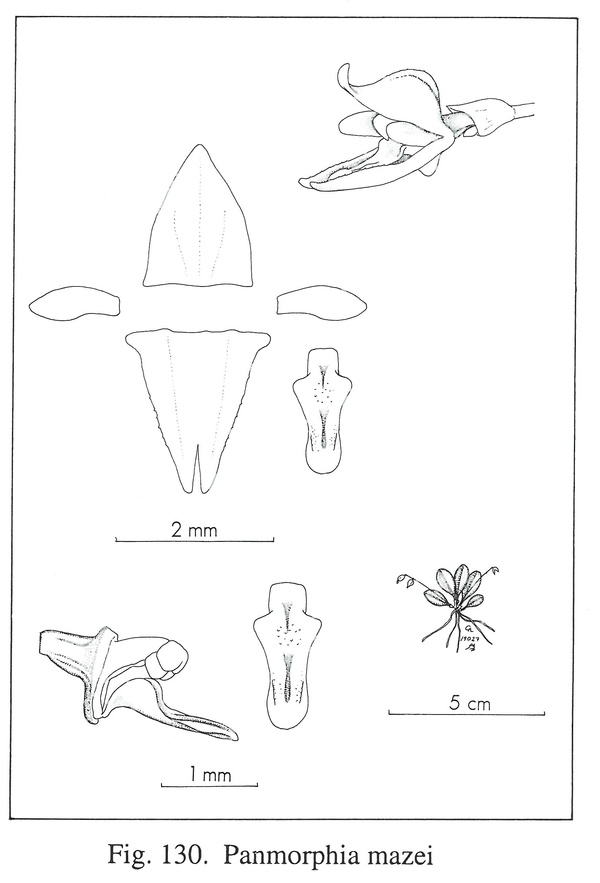References W3 Tropicos, Kew Monocot list , IPNI ; Flore Descriptive des Antilles Francaises H. Stehle 1939; Flora of the Lesser Antilles Garay & Sweet 1974 drawing ok; Orchidaceae Antillanae Nir 2000; Icones Pleurothallidinarum Vol XXVI Luer 2004 as Specklinia mazei; Icones Pleurothallidinarum Vol XXVIII Luer 2006 as Panmorphia mazei drawing fide;
