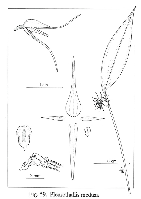 Pleurothallis medusa Luer 1997 SUBGENUS Pleurothallis SECTION Pleurothallis SUBSECTION Pleurothallis SERIES Pleurothallis Luer 1986 Drawing by © Carl Luer and The Swiss Orchid Foundation at the Jany Renz Herbaria Website