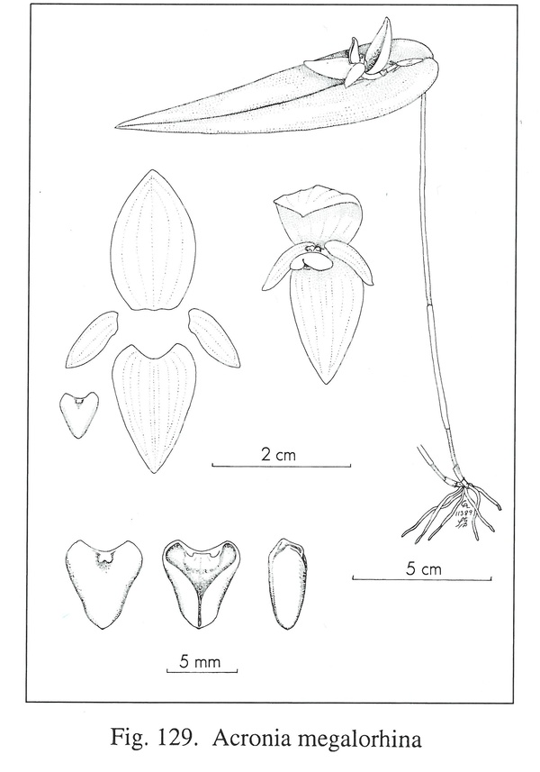 References W3 Tropicos, Kew Monocot list , IPNI ; Icones Pleurothallidinarum Vol XXVII Luer 2005 drawing fide as Acronia megalorhina