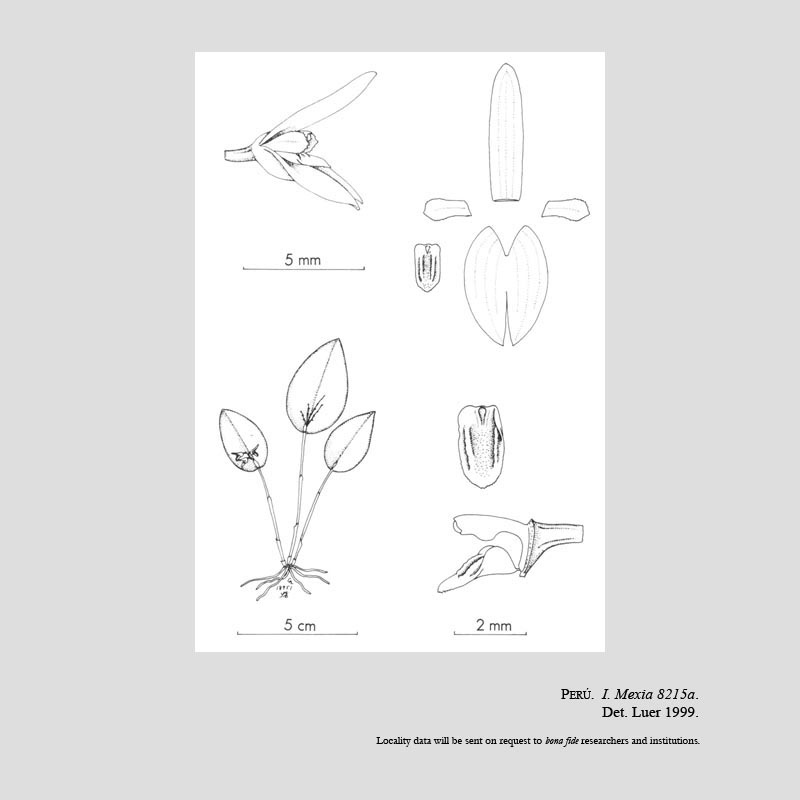 References W3 Tropicos, Kew Monocot list , IPNI ; *Icones Pleurothallidinarum Vol XVIII Systematics of Pleurothallis subsection Antenniferae, Longiracemosae, Macrophyllae-Racemosae and Subgenera Pseudsostelis and Acuminata Luer 1999 drawing fide; Orquideologia Vol 21 #3 2000 drawing fide; Icones Pleurothallidinarum Vol XXVI Luer 2004 drawing fide; Anales Jard. Bot. Madrid 75(1)e069: 13 2018 A taxonomic synopsis of Acianthera (Orchidaceae: Pleurothallidinae) in Peru, including two new species Damian, Chiron and Mitidieri 2018 as Acianthera mexiae;