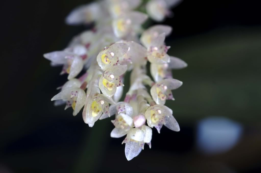 The smallest member of the subgenus Rhynchopera is endemic to the Amazonian basin of Bolivia and has a thick, ovoid, concave lip that is affixed to the column.
