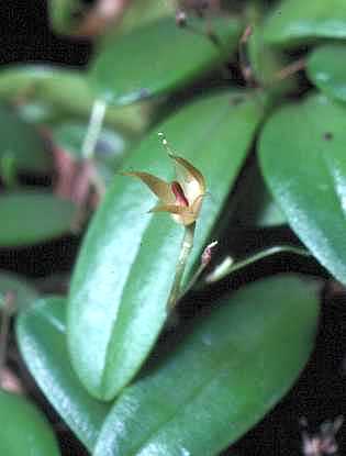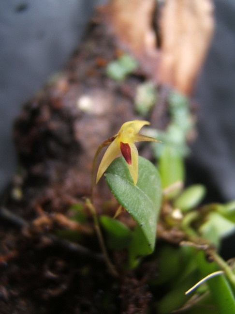 Found in Jalisco, Michoacan, Guerrero, Oaxaca and Chiapas states of Mexico as well as Guatemala at elevations of 1500 to 2200 meters as a creeping, mat forming, mini- miniature sized, cool to cold growing epiphyte on trees or lithophyte with near full sun. This diminutive species in found as small tufts or moss-like pads high up in trees, so it often goes un-noticed and has very short, slender, erect to reclining ramicauls carrying a single, apical, elliptic, obtuse, tridenticulate or emarginate apically, gradually narrowing below into the short, petiolate base leaf that blooms in the winter on 1 to several, 3/8 to 3/4" [1 to 2 cm] long, racemose, successively single, few [1 to 3] flowered inflorescence arising from the apice of the ramicaul, with the flowers held at mid-leaf.