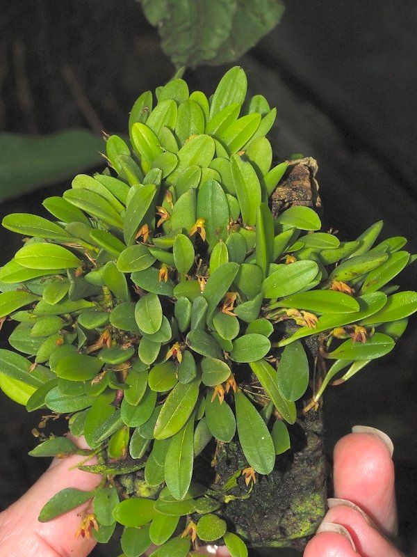 In my experience this species is extremely small and easily overlooked in the wild, as it comes from open, tall forests with the plants growing in the upper branches and usually are only found on newly felled timber. One of my favorite plants to show friends the diversity of orchids, this on the small end of orchids and Grammatophyllum speciosum on the other.