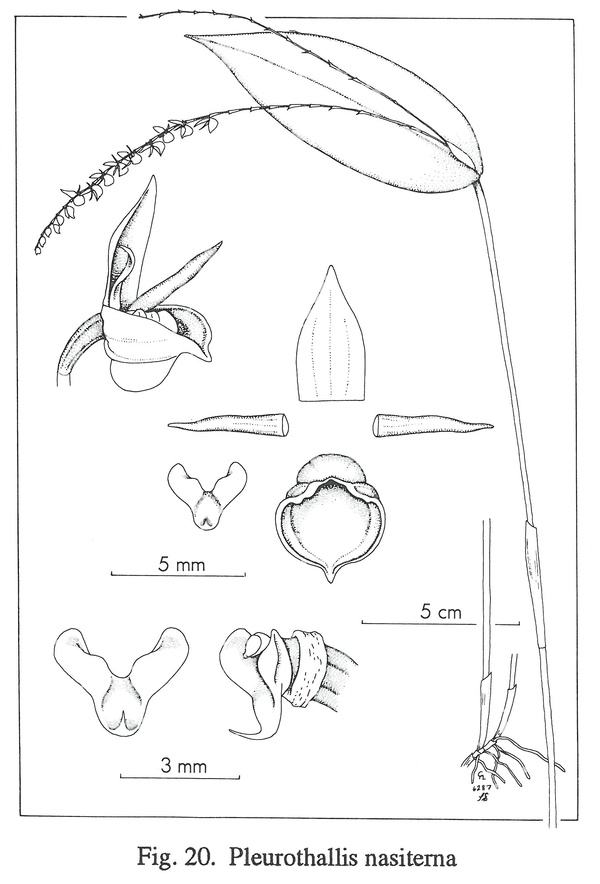 References W3 Tropicos, Kew Monocot list , IPNI ; Icones Pleurothallidinarum Vol III Luer 1986; Icones Pleurothallidinarum Vol XVIII Systematics of Pleurothallis subsection Antenniferae, Longiracemosae, Macrophyllae-racemosae and Subgenera Pseudsostelis and Acuminata Luer 1999 drawing fide;