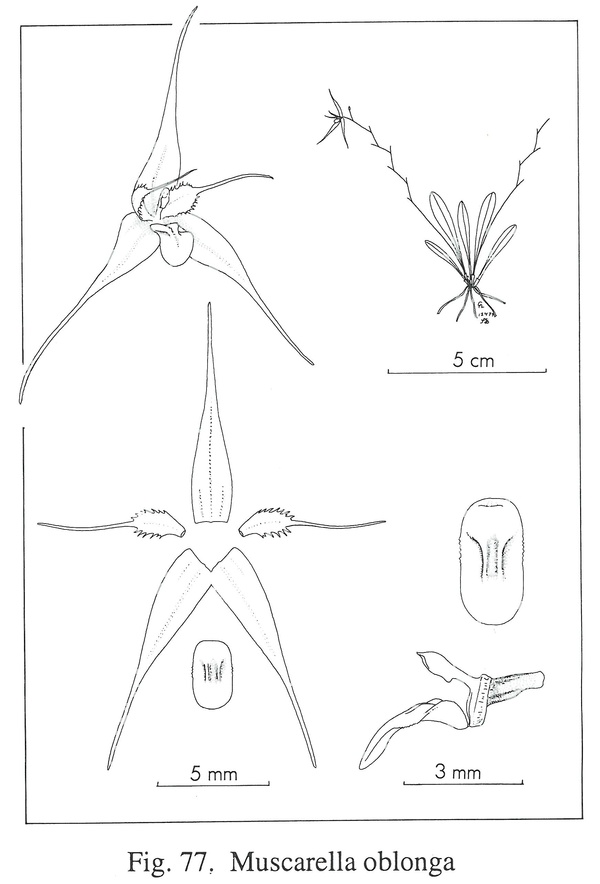 References W3 Tropicos, Kew Monocot list , IPNI ; Native Ecuadorian Orchids Vol 4 Dodson 2003 photo maybe - mine has revolute basal margins on lip; Icones Pleurothallidinarum Vol XXVI Luer 2004 as Specklinia oblonga; Icones Pleurothallidinarum Vol XXVIII Luer 2006 as Muscarella oblonga drawing fide; Pleurothallids Neotropical Jewels Vol 1 Karremans & Viera 2020 as Muscarella oblonga photo fide