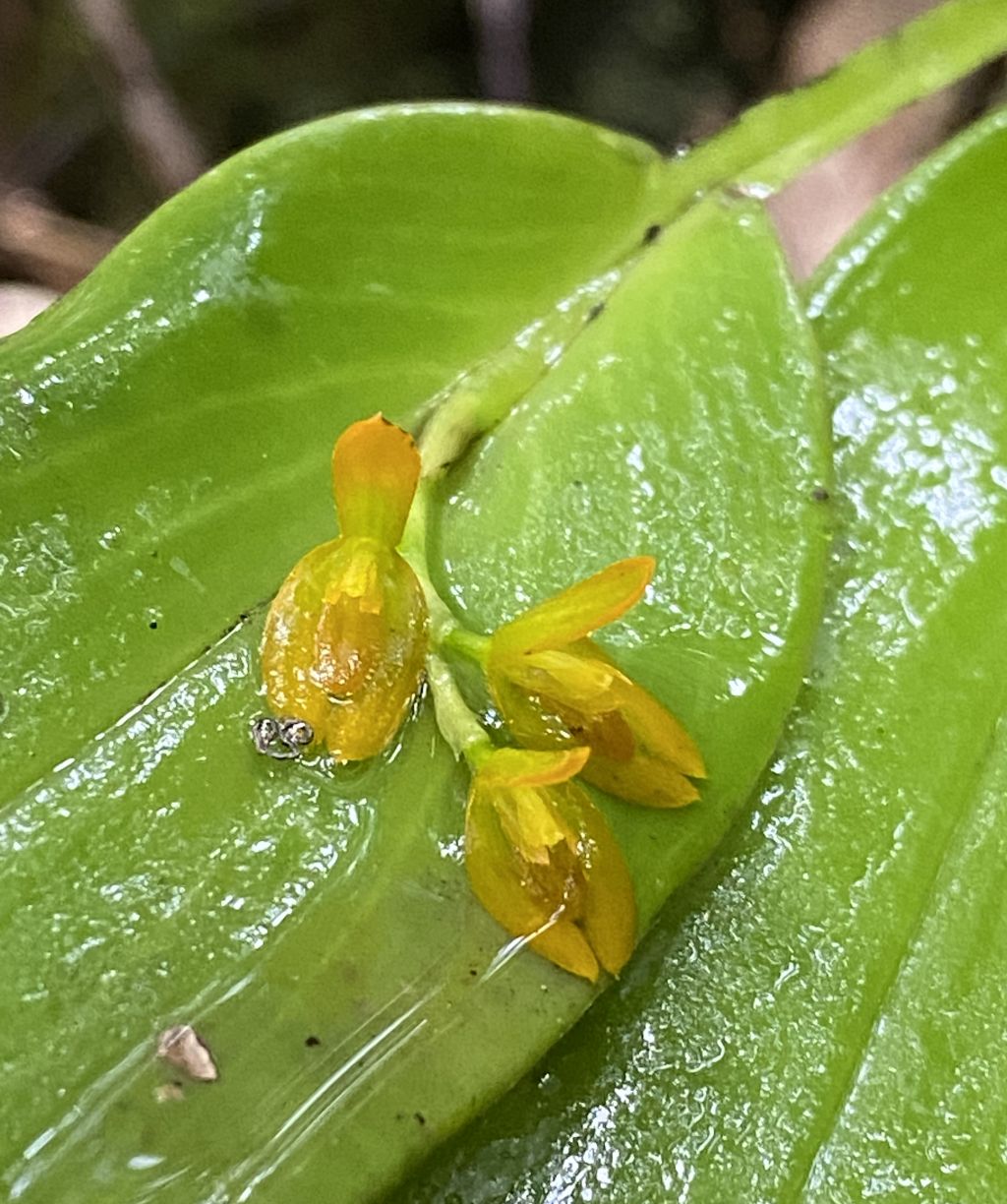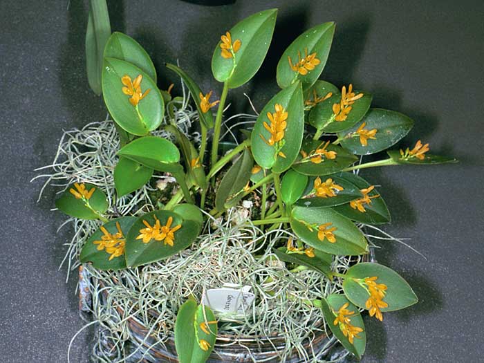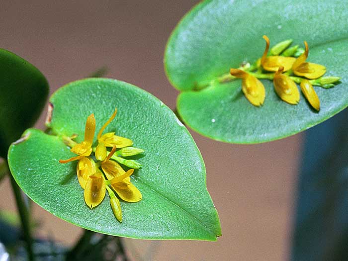 Found in Colombia, Ecuador, Peru, Bolivia and Venezuela as a miniature sized, warm to cold growing epiphyte in wet montane forests and secondary evergreen forests at elevations of 600 to 2800 meters with erect, stout ramicauls enveloped basally by 2 tubular sheaths and carrying a single, apical, ovate, ancipitous leaf that gradually narrows into the long petiole and blooms in the late summer and early fall on a short, racemose, several flowered inflorescence holding the flowers close to the leaf base.