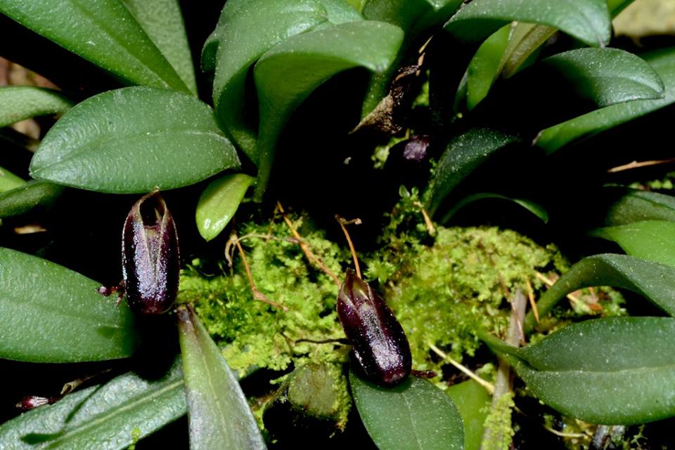 Found in Morona-Santiago province of Ecuador at elevations of 2800 to 2900 meters as a mini-miniature sized, cold growing epiphyte with erect ramicauls enveloped by 2 to 3 thin, tubular sheaths and carrying a single, apical, erect, thickly coriaceous, elliptical, subacute to obtuse, cuneate below into the petiolate base leaf that blooms in the summer and winter on an erect, slender, .6 t o.8" [1.5 to 2 cm] long lax, successively single, 2 to 3 flowered inflorescence arising from a node on the ramicaul and has thin infundibular floral bracts.
