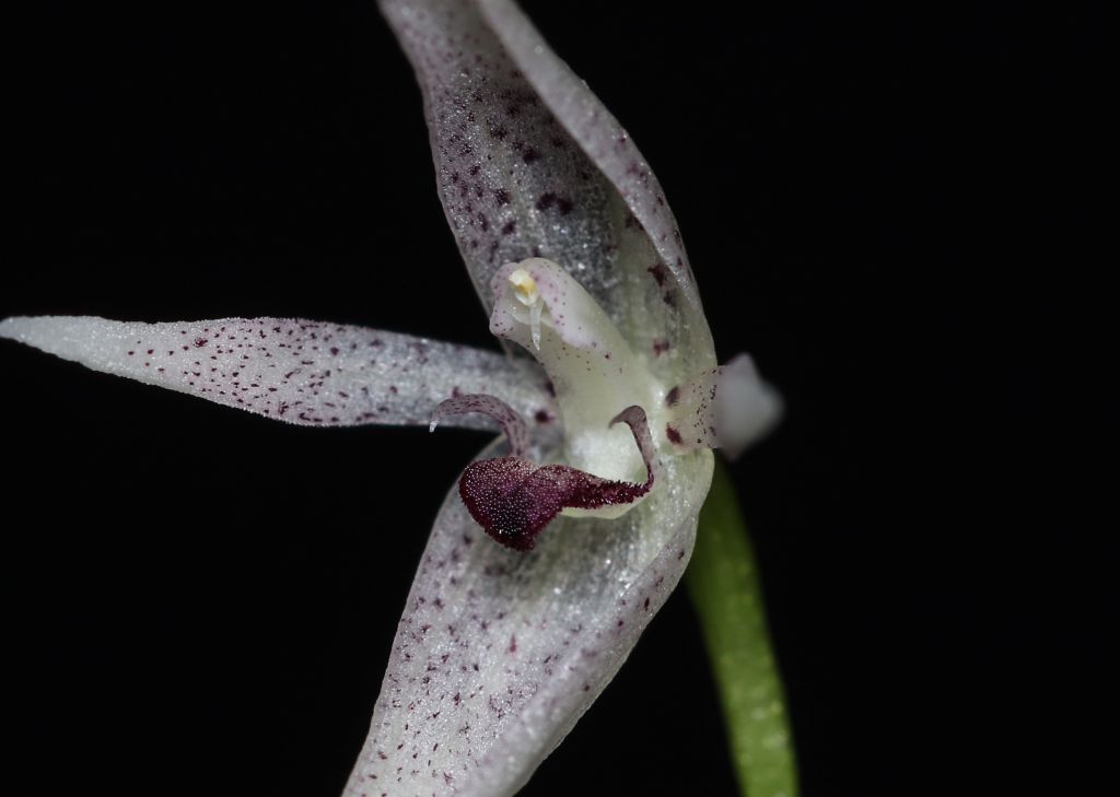 This species can be segregated from others in this section by the 2 membraneous lobes of the pubescent lip that have a pair of long, slender, membraneous lobes that look like microscopic walrus tusks.