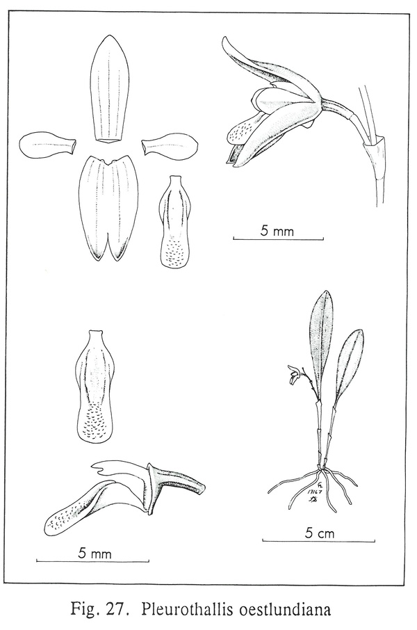 References W3 Tropicos, Kew Monocot list , IPNI ; Flora Novo-Galaciana Vol 16 Orchidaceae Mc Vaugh 1985 as P sanguinolenta drawing good; Icones Pleurothallidinarum Vol XX Luer 2000 drawing fide; Orquideas del Estado de Morelos ORQUÍDEA (MÉX.) VOLUMEN 16 NÚMERO ÚNICO enero 2002 drawing/photo fide; Icones Pleurothallidinarum Vol XXVI Luer 2004; Icones Pleurothallidinarum Vol XXIX Luer 2006 as Effusiella oestlundiana