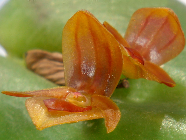 Found in Ecuador at elevations of 1000 to 2550 meters as a small sized, cool to cold growing epiphyte with erect, elongate, slender ramicauls enveloped basally by 2 to 3 tubular sheaths and carrying a single, apical, narrowly cordate, acute, leaf that blooms on a successively single flowered inflorescence