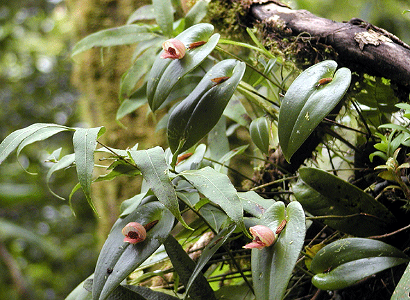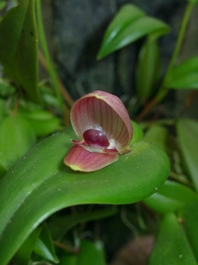 Found in Costa Rica and Panama as a small sized, warm to cool growing epiphyte at elevations of 1200 to 2100 meters with slender, suberect to horizontal ramicauls enveloped basally by 2 close, tubular sheaths and another on the lower half and carrying a single, apical suberect to horizontal, coriaceous, avate, acute, basally sessile and deeply cordate leaf that can bloom at any time of the year on a fascile of successive single [sometimes two] flowered inflorescence arising through a narrow spathe.