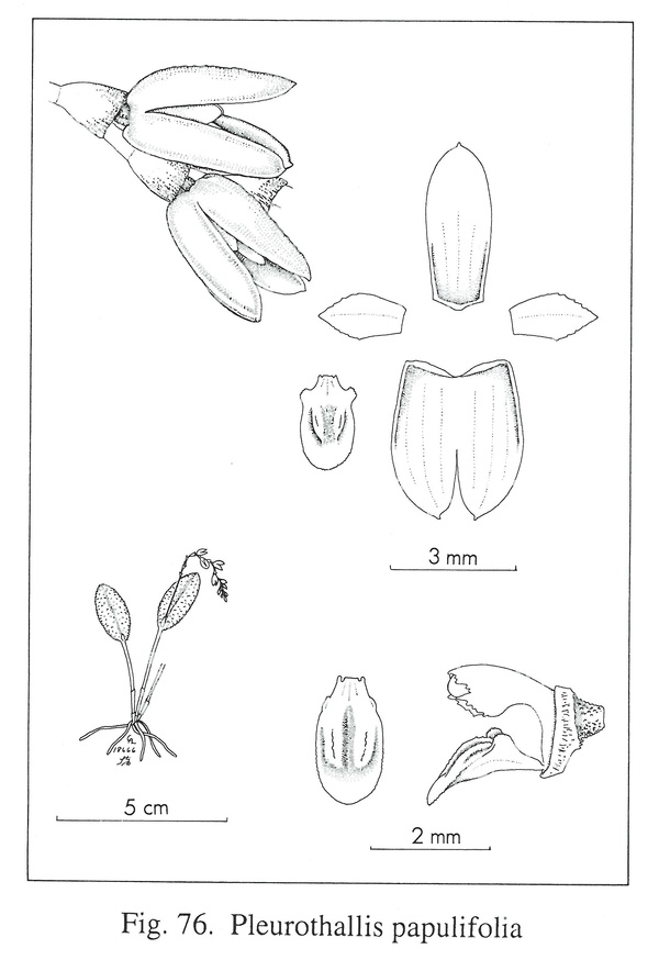 References W3 Tropicos, Kew Monocot list , IPNI ; Systematics and evolution of the genus Pleurothallis R. Br. (Orchidaceae) in the Greater Antilles Hagen Stenzel 2004 drawing fide; Icones Pleurothallidinarum Vol XXVI Luer 2004 drawing fide; Icones Pleurothallidinarum Vol XXVI Luer 2004 as Acianthera papulifolia
