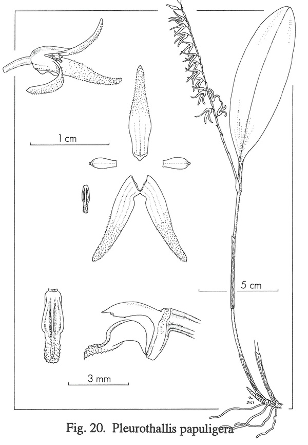 References W3 Tropicos, Kew Monocot list , IPNI ; Icones Pleurothallidinarum Vol III Luer 1986; Icones Pleurothallidinarum Vol XVIII Systematics of Pleurothallis subsection Antenniferae, Longiracemosae, Macrophyllae-Racemosae and Subgenera Pseudsostelis and Acuminata Luer 1999 drawing fide; Orchids of Bolivia Vasquez & Ibisch Vol 1 2000 drawing fide; Icones Pleurothallidinarum Vol XXVI Luer 2004 as Specklinia papuligera; The Parque Nacional Carrasco, Cochabamba Bolivia, Orquideas del Proyecto Hidroelectrico Ivirizu Website 2021 as Stelis papuligera photo fide;