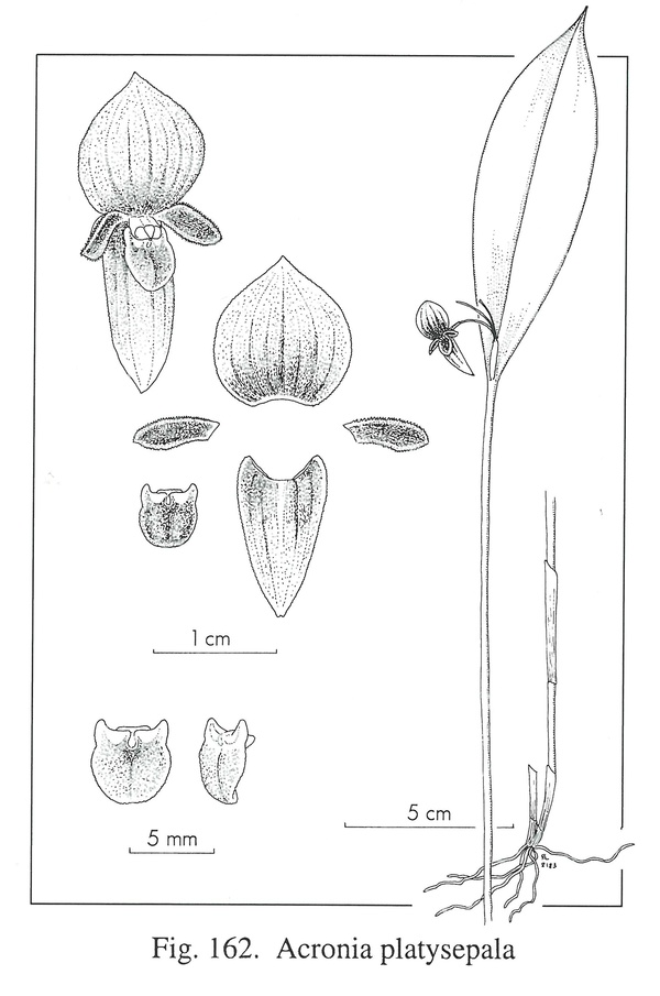 References W3 Tropicos, Kew Monocot list , IPNI ; *Repert. Spec. Nov. Regni Veg. Beih. 7: 111 1920; Figuren Atlas zu den Orchideenfloren de Sudamerikanishen Kordillerenstaten 1929 drawing fide; Die Orchideen #7 25-28 tafel 8 Rudolph Schlechter 1971 drawing hmm; Orquideologia Vol 16 No 2 1984 as P granularis drawing fide; Icones Pleurothallidinarum Vol 3 Luer 1986 as P granularis; Native Colombian Orchids Vol 3 COS 1991 as P granularis photo ok; Native Colombian Orchids Vol 6 COS 1998 errata= P platysepala; Icones Pleurothallidinarum Vol XXVII Luer 2005 drawing hmm as Acronia platysepala; Orquideas de Farallones de Cali Galindo-Tarazona, Haelterman, Zuluaga Trochez and Sebastian Moreno 2020 photo fide; Lankesteriana 18: 217-230 Wilson, Zhao etal 2018 photo fide