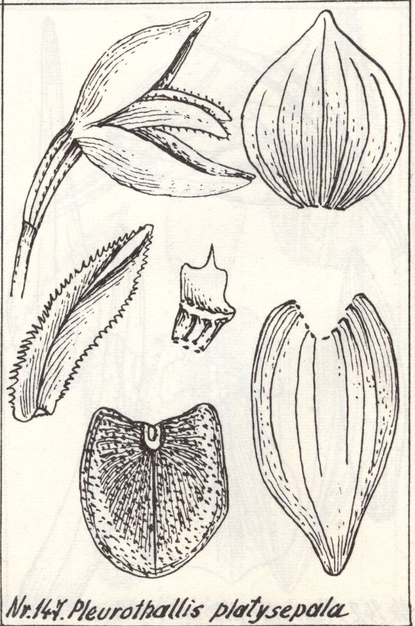 Pleurothallis platysepala Schltr. 1920 SUBGENUS Pleurothallis SECTION Macrophyllae-Fasciculatae Lindl. 1859 TYPE Drawing by © David Haelterman and his
